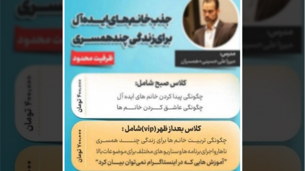 تبلیغ برنامههای مرتبط با چندهمسری و کلاسهای آموزشی زنان در ماەهای گذشته در ایران روبه افزایش بوده است.