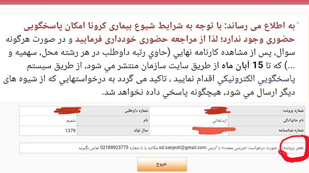 مرکز خبر- به گزارش خبرگزاری زن، روز چهارشنبه ۱۲ مردادماه ۱۴۰۱، ۱۳ شهروند بهایی در هنگام مراجعه به سایت سازمان سنجش برای دریافت نتایج کنکور ۱۴۰۱ با پیغام نقض پرونده مواجه شده و سایت سازمان سنجش با این عنوان اجازهی دسترسی به رتبهی کسب شده را به این شهروندان بهایی نداده است.