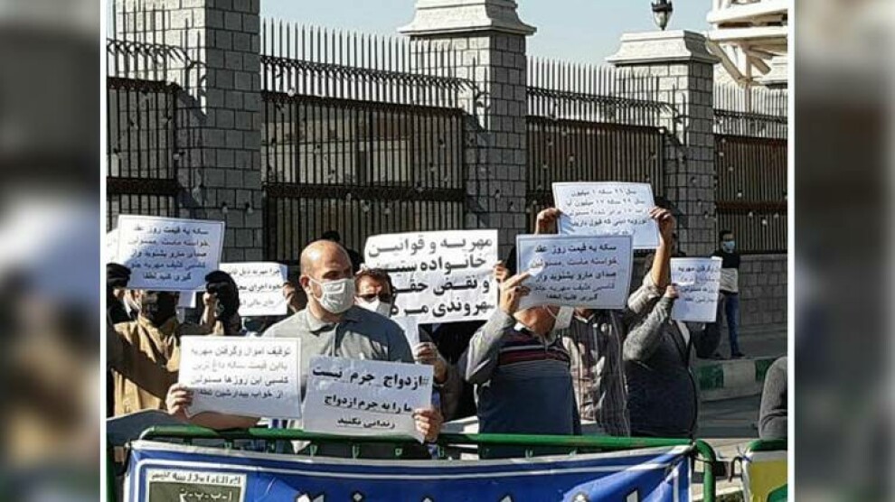 گروهی از مردان مقابل مجلس به بهانهی مخالفت با مهریه تجمع کرده و بر افکار ضد ن و برابریخواهانه تاکید کردند.
