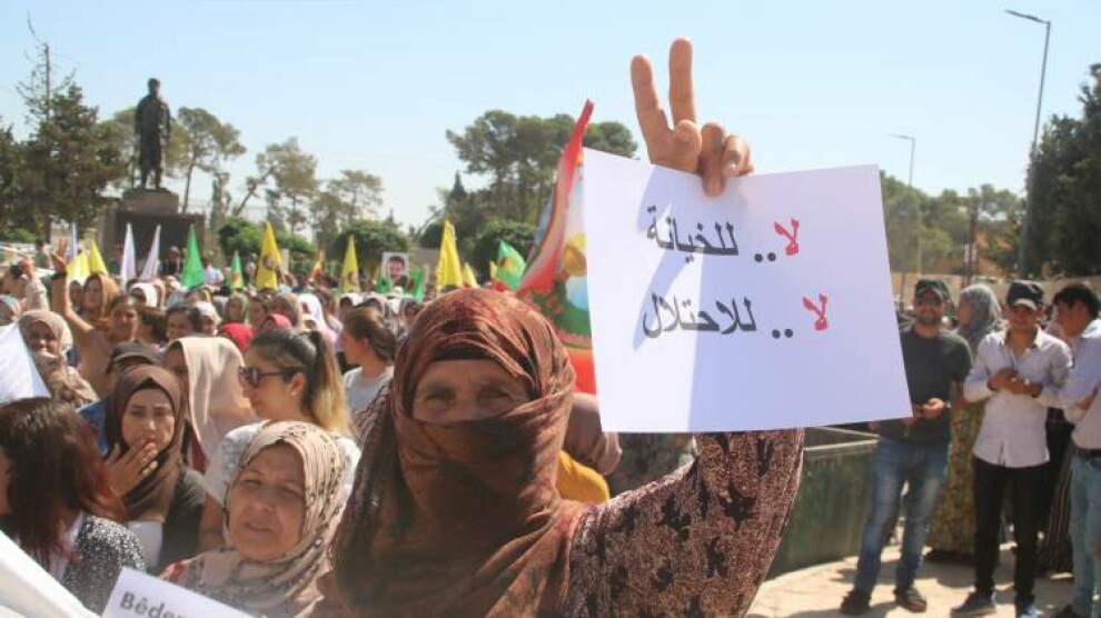 وی میپرسد "اشغالگران بیش از این چە میخواهند، هزاران مادر در اینجا برای فرزندانشان کە در مناطق دفاع مشروع مورد حملەی ترکیە قرار میگیرند اشک میریزند."