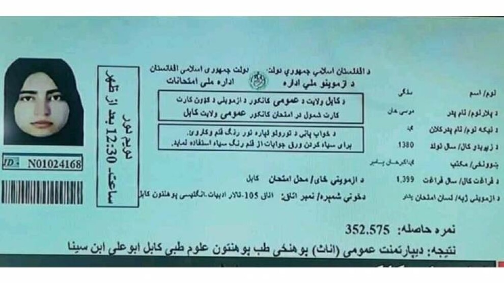 کابل – امروز چهارشنبه، ۴ شهریور ۱۴۰۰ در حالی نتایج آزمون کنکور اعلام شد که طالبان جاهل حاکمیت تمام کشور را در دست گرفتهاند و قبل از هر کار دیگر مانع کار زنان در ادارات دولتی و غیردولتی شدهاند. در نتیجهی این آزمون دختر ۲۰ سالهای به نام "سلگی باران" مقام اول کنکور امسال را از آن خود کرد.