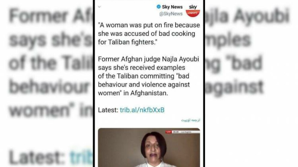 قاضی پیشین افغانستانی در گفت وگو با اسکای نیوز از وضعیت بد زنان این کشور تحت حاکمیت طالبان سخن گفت، بە گفتەی وی زنی بە دلیل کیفیت پایین غذا توسط این گروە بە آتش کشیدە شدە است.