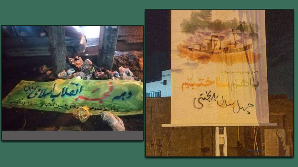 مرکز خبر- در حالی کە حکومت ایران در روزهای دهەی فجر قرار دارد و سعی میکند با نصب نمادها و اجرای برنامەهای دهەی فجر افکار عمومی را بە انحراف بکشاند، اما آزادیخواهان همچنان آتش انقلاب ژینا را با سوزاندن نمادهای حکومتی شعلەور نگە داشتەاند.