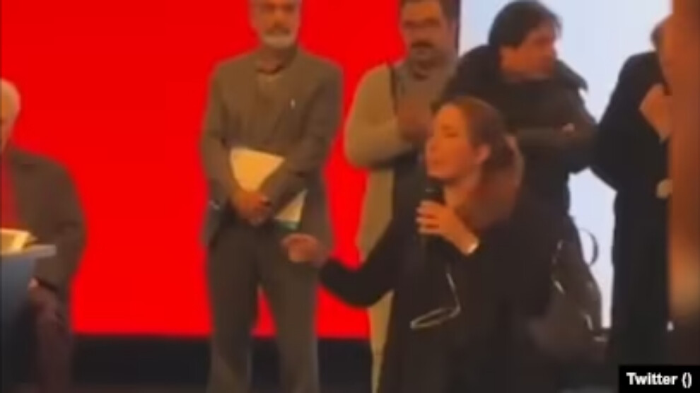 زینب کاظمپور پس از ایراد سخنانش، روسریاش را از روی سن پرتاب و جلسه را ترک کردە بود.