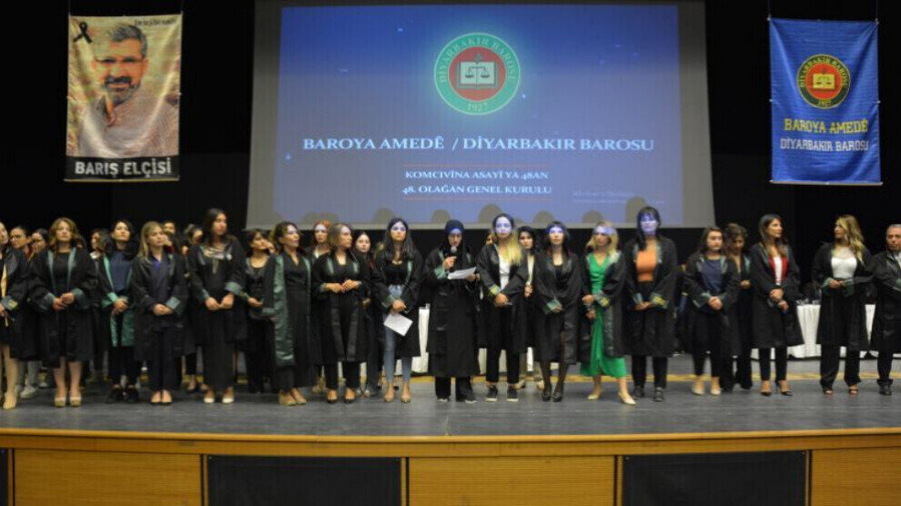 آمد- چهل و هشتمین مجمع عمومی کانون وکلای دادگستری آمد ( دیاربکر) روز گذشته شنبه ۱۶ مهرماه( ۸ اکتبر) در مرکز کنگرهی فرهنگی سزای قره قوچ در تالار شهرداری آمد آغاز شد. پس از نمایش گزارش سالانه که به زبان کوردی تهیه شده بود، هیئت کانون وکلا به سخنرانی پرداختند. پس از پایان سخنرانی ، وکلای زن به نشانهی ابراز همدردی با ژینا امینی که توسط گشت ارشاد در ایران کشته شد، روی صحنه رفتند و موهای خود را کوتاه کردند.