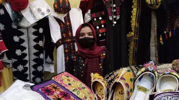 ما با دو تن از زنان که برگذار کننده نمایشگاه بودند هم صحبت شدیم. لیمه لمبه یکی از زنان تجارت پیشه که لباسهای محلی ولایت قندهار را به نمایش گذاشته بود برای ما گفت: «ما محصولات خود را از ولایت قندهار آورده ایم. همه لباسهای دست دوزی، ساخت قندهار میباشد. امروز روز دوم نمایشگاه بین المللی به کمک ایران و افغانستان است که در یکی از هوتلهای کابل برگذار شده، ما انواع و اقسام لباسهای دست دوزی داریم که به فروش میرسانیم.»