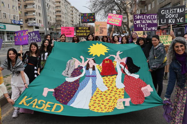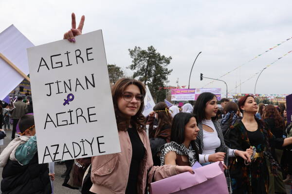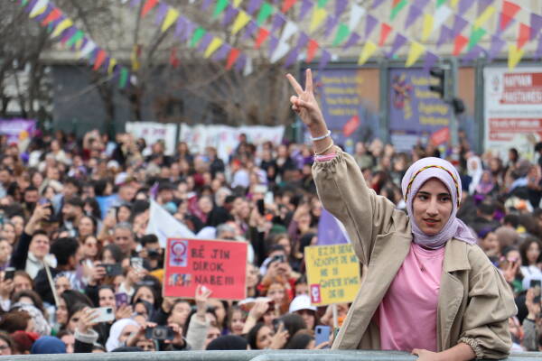 آمد - به مناسبت روز جهانی زن ٨ مارس، هزاران زن به رهبری پلتفرم زنان دجله آمد (DAKAP) در میدان ایستگاه گرد هم آمدند و خواستههای خود برای صلح را فریاد زدند. در این میتینگ که تصاویر رنگارنگی داشت، زنان با لباسهای ملی کوردی شرکت کردند. در میتینگی که پیام رهبر خلق کورد، عبدالله اوجالان، قرائت شد، شور و هیجان هیچگاه فروکش نکرد.