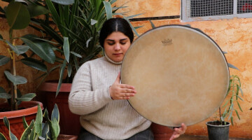 Muzîkjena ciwan Xedîce Hesên, bi lêxistina def û baterî azweriya xwe ya mûzîkî didomîne û berpirsyartiya xwe ya malbat û zaroka xwe ya biçûk jî pêk tîne.