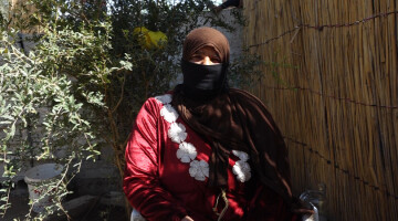 Fitêm Siûd a ji gundê Ebû Fixêz ê Çiyayê Kizwanan li çoleke ku ne mal ne jî mirov û ne lawir lê tên dîtin, bi hevjînê xwe re bivirê xwe girtiye û nêtûnê kom dike.