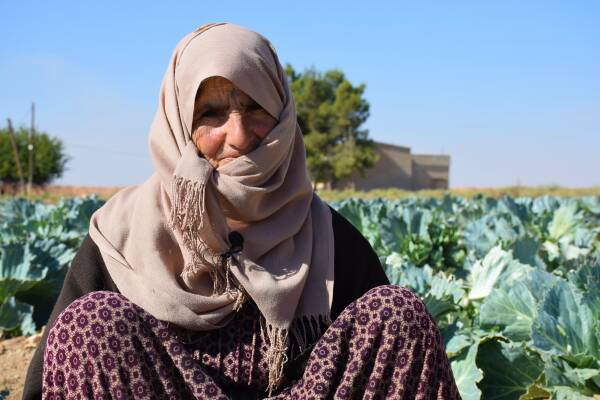 Hisa Mele Îbrahîm ku ciwantiya xwe hemû li gundê Um Hermela derbas kiriye niha ruxmê temenê xwe yê 68 salî jî çandiniyê dike û li dijî êrîşên qirkirinê girêdana wê ya bi axê re zêde bûye.