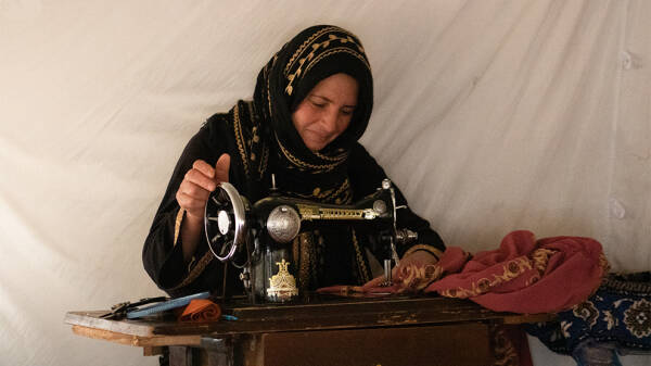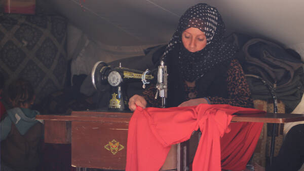 Li ser prensîba ‘pêwîstî çavkaniya dahênanê ye’ komek jinan biryar dan konên xwe yên yek odeyî veguherînin cihên terzîtiyê ji bo debara jiyanê. Kîfae El-Sehim ji Til Temir ku rojane bi êrişên dewleta Tirk re rû bi rû ye koçber bûye, 3 sal in li Kampa Newroz dijî. Kîfae El-Sehim dayika 7 zarokan e, bi komek jinên li kampê re biryar daye konê xwe bike cihê dirûtinê da ku pêdiviyên xwe bi cih bîne.