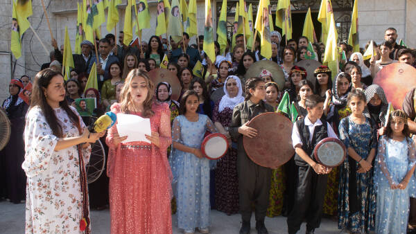 Daxuyanî li pêşiya Navenda Mihemed Şêxo ya Çand û Hûnerê ji aliyê Hevseroka Tevgera Çandê ya Kantona Qamişlo Gulbehar Omer ve hat xwendin.
