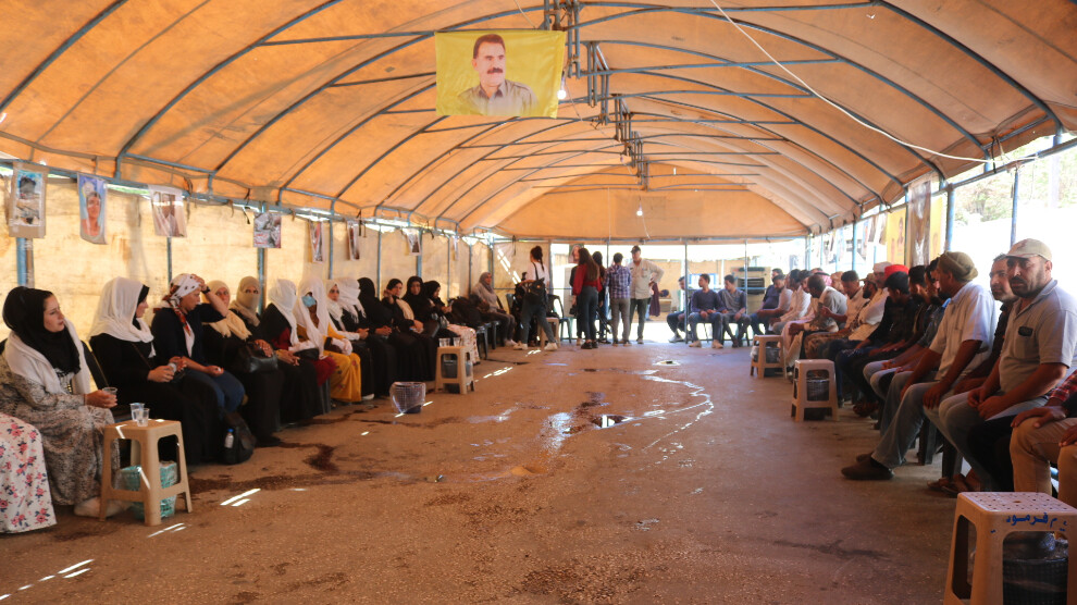 Rêvebera Hêzên Parastina Civakî HPC û HPC-Jin a Navçeya Til Koçer Xewla Mûsa got: “Em çalakiyê li hember kiryar û êrîşên dewleta tirk li ser herêmên Bakur û Rojhilatê Sûriyeyê li dar dixin. Îro li ser navê HPC û HPC-Jin a Navçeya Til- Koçer em jî beşdar bûne bi vê çalakiyê piştgiriyê didin wê. Ev konê ku hatiye danîn, konê şeref û namûsê ye û em tu êrîşan li ser gelê xwe qebûl nakin. Qaşo ew ev navend û saziyên mafên mirovan ji bo parastina mafên vî gelî hatine lê mixabin me parastin ji wan nedîtiye. 28 roj di ser çalakiya konvedanê re derbas bûn, heta vê kêliyê deng ji NY’ê derneketiye û daxwazên me bi cih nehatine. Bersiva me jî diyar e û em konê ji vir ranakin heya ku êrîş û balafirên dewleta tirk li ser esîmanê herêma me bên sekinandin.