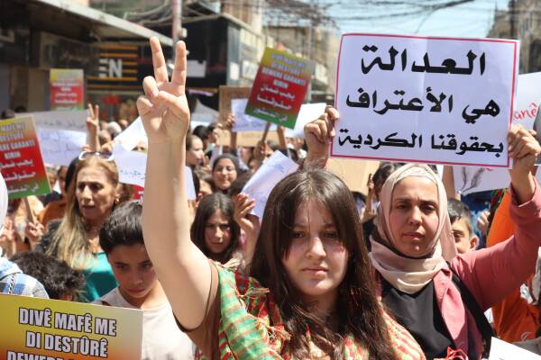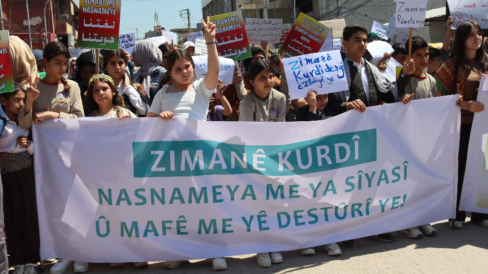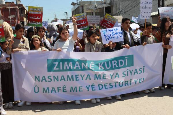 Di bin dirûşma “Ziman hebûn û nasnameya me ye” şêniyên bajarê Qamişloyê meşek girseyî li dar xistin û bal kişandin ku divê di destûra nû ya Sûriyeyê de zimanê Kurdî bi fermî were naskinin.