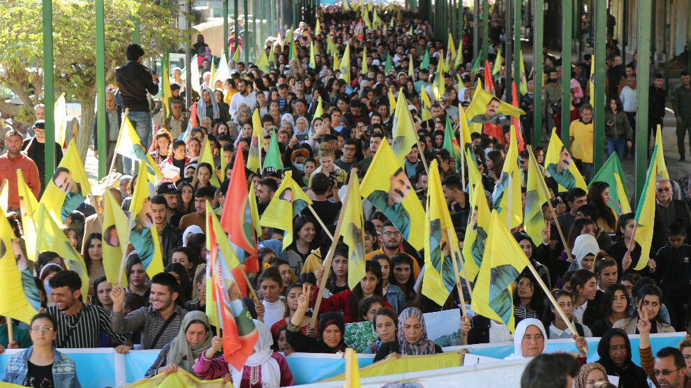 Di meşa ku ji Çarexerêya Sonî ya bajarê Qamişlo- Bakur û Rojhilatê Sûriyeyê dest pê kir û li ber Navenda Mihemed Şêxo ya Çand û Huner dom kir de, wêneyên Rêberê Gelê Kurd Abdullah Ocalan hat bilind kirin. Jinên beşdarî meşê bûn bi daxwaza dawîkirina tecrîda girankirî ya li ser Rêberê Gelê Kurd Abdullah Ocalan bang li saziyên mafên mirovan kirin ku erkê xwe pêk bînin.