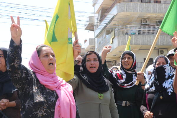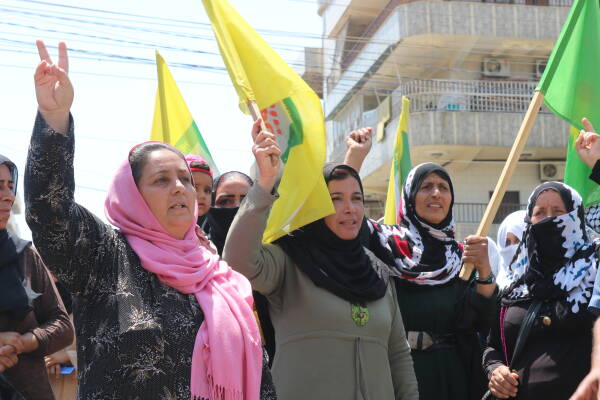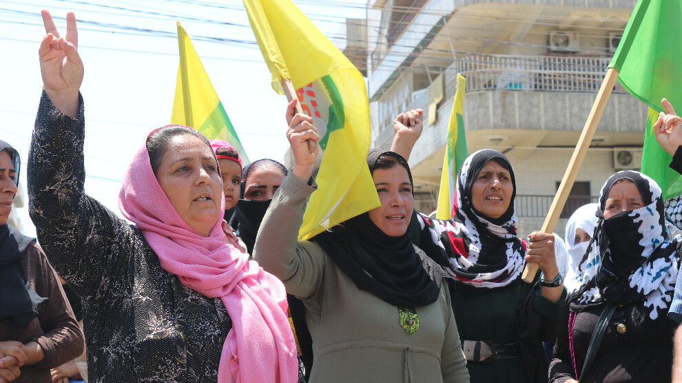 Qamişlo- Ji ber berfirehekirina êrîşên dewleta tirk li ser Bakur û Rojhilatê Sûriyeyê ji 8’ê Tebaxê ve ku dewleta tirk bi top û balafirên keşfê êrîş dike. Hêzên Parastina Civakê HPC- Jin li pêşiya nûnertiya Neteweyên Yekbûyî ya li bajarê Qamişko - Bakur û Rojhilatê Sûriyeyê, çalakî li dar xist û nerazîbûna xwe ji bo bêdengiya cîhanê nîşan da. Çalakvanan dirûşmeyên “Qatil Erdogan, bijî Rojava” berz kirin.