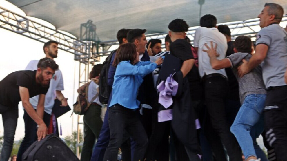 Bi talîmata rêveberiya zanîngehê destûr nehat dayîn Aygul Doku biaxive û hat xwestin ku wê ji ser dikê were derxistin. Di vê navberê de komek xwendekar li ser dikê, durişmeyên 'Gulistan Doku li ku ye?' avêtin. Dema hat xwestin Aygul Doku bi zorê ji ser dikê bê daxistin, aloziyek demkurt hat jiyîn. Dema Aygul Doku ji ser dikê dihat daxistin, rewşa wê ya tenduristî ne baş bû, piştî demekê daxuyanî da rojnamevanan.