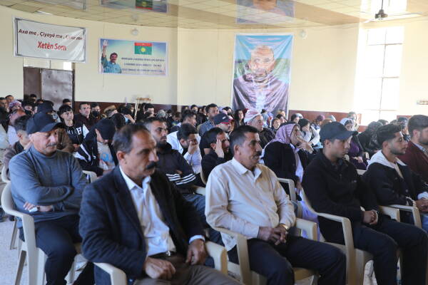 Li ser navê endamên (TAJÊ) axaftin ji aliyê berdevka Saziya Malbatên Şehîdan Dayê Pakiz Celal ve hat kirin. Dayê Pakiz di destpêka gotinên xwe de cejna 8’ê Adarê li Rêberê Gelê Kurd Rêber Apo, Tevahî Jinên Cîhanê, gerîlayên azadiyê,li hêzên QSD’ê tevahî jinên Êzidî û bi taybetî li jinên dîlgirtî pîroz kir û wiha domand: “Ji bo me tevahî roj xwedî wateya roja 8’ê Adarê ne. Em pir bi şans in ku me fikrê Rêber Apo nas kiriye. Êşa me jinan tev yek e ji bo wê em bang dikin ku tenê jin nebe kabaniya malê divê jin di her warê civakê de çeleng be û ji bo azadiya xwe têbikoşe.”