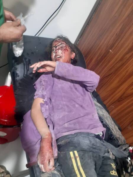 Di encama topbaranê de Nûrîya Mihemed El-Hisên a 40 salî, Mûna Ebdilselam El-Mihemed a 10 salî û Kemal Ebdilselam Mihemed ê 16 salî birîndar bûn.