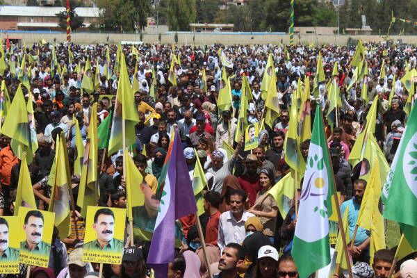 Mitîng li stadyuma Şehîdên 12'ê Adarê a bajarê Qamişlo- Bakur û Rojhilatê Sûriyê, di bin diruşmeya "Azadiya Rêber Apo misogeriya demokrasiyê û aramiya herêmî ye" destpê kir. Piştî deqeyek rêzgirtinê, Endama Desteya Rêveber a Partiya Yekîtiya Demokratîk (PYD) Asya Abdullah axivî.