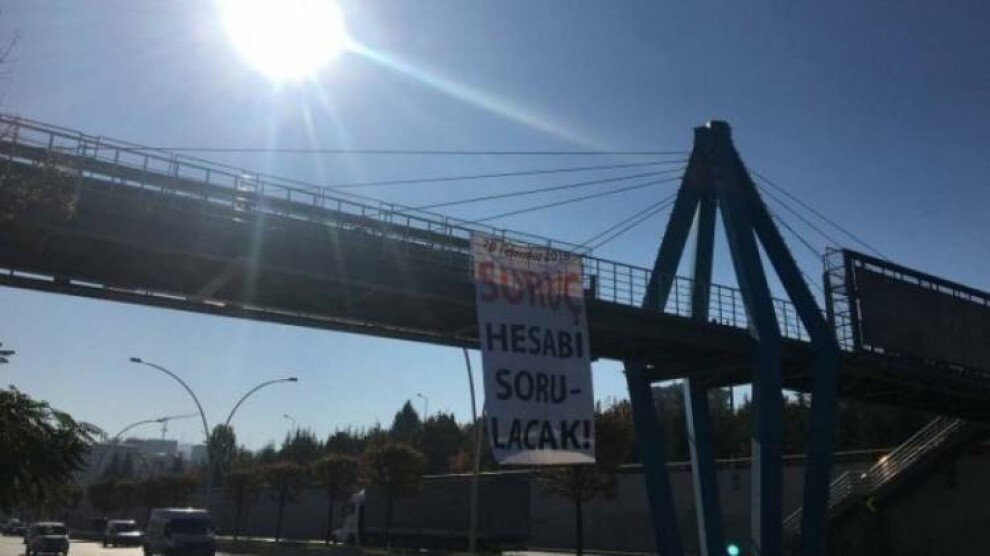 Enqere- Ciwanên endamên Federasyona Komeleyên Ciwan a Sosyalîst (SGDF) li dijî biryara derbarê doza Komkujiya Pirsûsê de hat dayin pankarta "20'ê Tîrmeha 2015 dê hesabê Pirsûsê bê pirsîn" vekirin û biryar şermezar kirin. Di doza Komkujiya Pirsûsê de cezayê muebbetê tenê ji bo Yakup Şahin ê girtî hat dayin. Loma ciwanan pankart bi ser pira li Kuçeya Yuzuncu Yil ya Navçeya Çankayayê ya Enqereyê ve darde kirin.