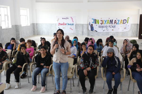 Yekitiya Jinên Ciwan a Şengalê di bin dirûşma “Jin Jiyan Azadî Serbixwe azadî” de li Medreseya Sor a ku bi hezaran jinên Êzidî di fermana 74’ an lê dîl hatibun girtin, semînerek dan.