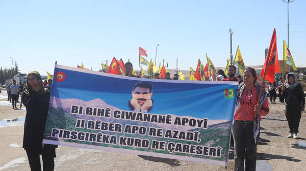 Meşê bi berzkirina dirûşmên “Bê serok jiyan nabe” û “bijî berxwedana Îmraliyê” her wiha hilgirtina posterên Abdullah Ocalan û pankartên ku daxwaza azadiya fizîkî ya Ocalan dikin, dest pê kir.