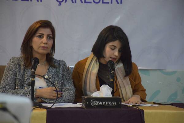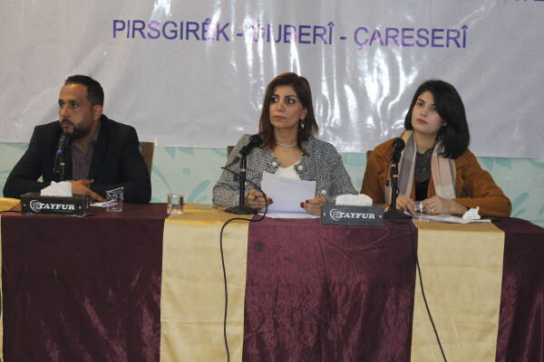 Rêvebera Rêxistina Mafên Mirovan a Cizîrê Evîn Cuma tekez kir ku yê herî zêde rastî cureyên tundiyê tê li herêmên dagirkirî jin û zarok e û wiha axaftina xwe domand: “Bi boneya hefteya cihanî ya mafê mirovan em banga rêgirtina li ber kiryarên dewleta tirk ên li ser herêmê dikin. Dewleta Tirk û çekdarên girêdayî wê di bajarên dagirkerî mîna Efrîn, Serêkaniyê û Girê Spî jinan dikin hedef. Ew dixwazin herêm vala bibe da ku armancê xwe pêk bînin û demografiya herêmê bidin guhertin. Di heman demê de îro bi hezran jin û zarok di bin konê koçberiyê rastî zehmetî û êşê tên di bin paşguhkirina rêxistinên mirovî yên cihanî ji wan re. Ji bo wê em bang li rêxistinên cihanî yên mirovî dikin ku li hemberî pilan û kiryarên li herêmên Bakûr û Rojhilatê Sûriyê, Rojava pêk tê guh û çavê xwe negirin bila wijdanê wan nekeve bin razîbûna bercewendiyên siyaseta dewletan.”