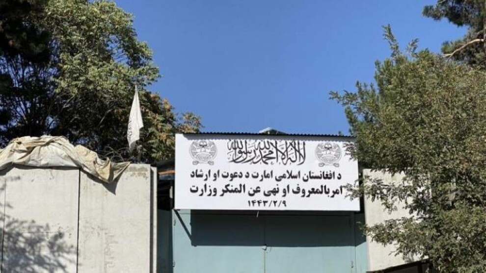 Navenda Nûçeyan- Talîbana ku rêveberiya Afganîstanê dagir kir, tabelaya “Wezareta Jinê” daxist û li şûna wê tabelaya “Wezareta Pêşîlêgirtina Bêexlaqiyê” daliqand. Di dîmenên li ser medya yê hatin parvekirin de, tabelaya Wezareta Jinê ya li paytexta Kabîlê tê daxistin û li şûna wê panoya li ser “Wezareta Dua, Rêberî û Teşwîq kirina Namûsê û Pêşîlêgirtina Bêexlaqiyê” nivîsandi bû, tê daliqandin.