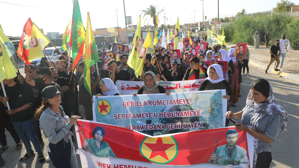 Jinên Şengalî yên beşdarî meşa li dijî çekên kîmyewî bûn gotin; “Gerîlayan ji bo rizgarkirina vî gelî xwîn rijandin, em ê jî heya dilopa xwîna xwe ya dawiyê xwedî li gerîla derbikevin.”