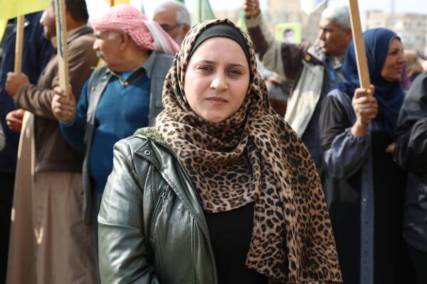 Her wisa Sene Receb ya ji pêkhateya Çerkez ku ji bajarê Minbic beşdarî meşê bibû, wiha got: "Ez bi navê jinên Çerkez yên li herêmên Bakur û Rojhilatê Sûriyê serhildana jinên Rojhilatê Kurdistanê silav dikin. Em ji wan re dibêjin, jin çavkaniya hêzê ye. Ji ber vê serhildanên ku li ser bingehê azadiya jin û civakê destpêbikin û pêşengên wê jin bin teqez wê bi serkeve. Ji lewra em ji vê yekê bawerin ku emê di demeke nêz de serkeftina serhildana Jîna Emînî bibînin. Heger ev yek pêk were, emê li hember duyemîn şoreşên jin yên li Rojhilata Navîn bin."