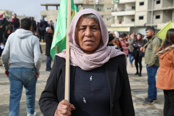 Her wisa Sene Receb ya ji pêkhateya Çerkez ku ji bajarê Minbic beşdarî meşê bibû, wiha got: "Ez bi navê jinên Çerkez yên li herêmên Bakur û Rojhilatê Sûriyê serhildana jinên Rojhilatê Kurdistanê silav dikin. Em ji wan re dibêjin, jin çavkaniya hêzê ye. Ji ber vê serhildanên ku li ser bingehê azadiya jin û civakê destpêbikin û pêşengên wê jin bin teqez wê bi serkeve. Ji lewra em ji vê yekê bawerin ku emê di demeke nêz de serkeftina serhildana Jîna Emînî bibînin. Heger ev yek pêk were, emê li hember duyemîn şoreşên jin yên li Rojhilata Navîn bin."