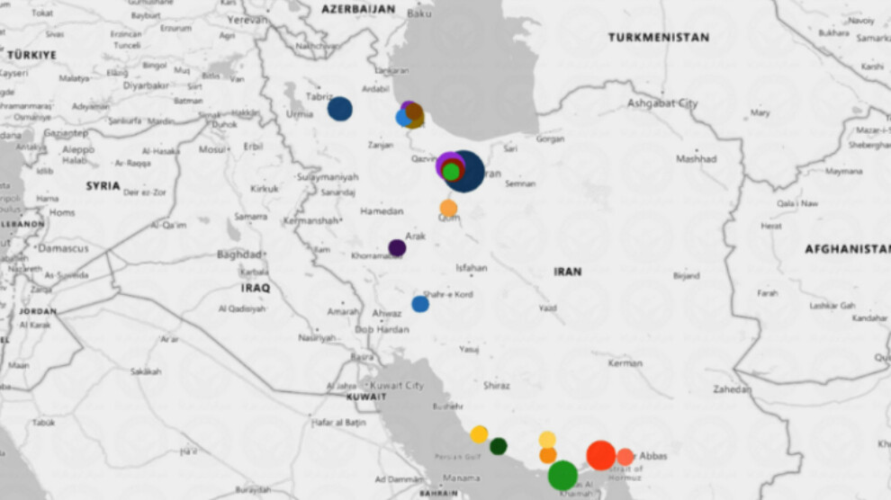 Li gorî heman çavkaniyê, piraniya êrîşan li ser Tehran, Elburz, Esfehan, Bender Ebas, Qûm, Buşehir, Tewrêz û Kendava Fars pêk hatine.