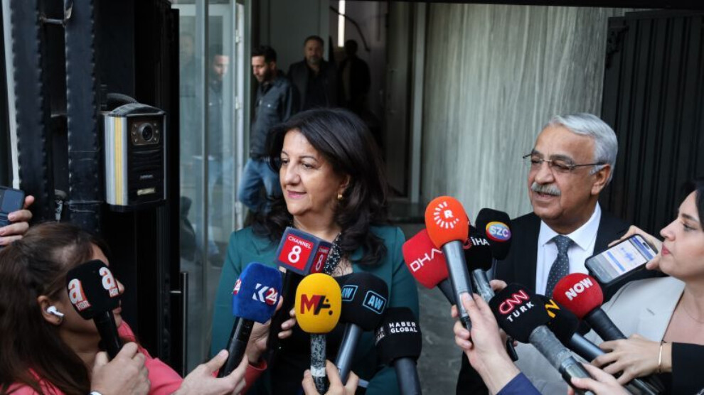 Navenda Nûçeyan – Heyeta Partiya Wekhevî û Demokrasiyê ya Gelan (DEM Partî) ya Îmraliyê Pervîn Buldan û Mîthat Sancar bi Serokkomarê Tirkiyeyê Recep Tayyîp Erdogan re li Qasra Serokkomariyê hevdîtinek pêkanîn.