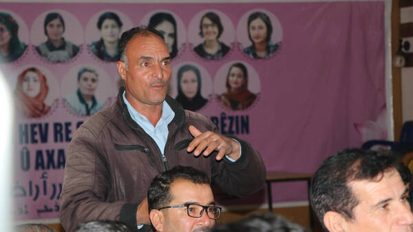 Ridwan Xelef jî balkişand ser rewşa jinên Bakur û Rojhilatê Sûriyê û welatên din û wiha cûdahiya wê bilêv kir: "Guhertinên ku îro li vir li Bakur û Rojhilatê Sûriyê çêbûye, gaveke balkêş e, lê rastî jin bi sedê salan e bi tundiya mêr re rû bi rû tê. Rewşa vir ji rewşa jinên Efxanî û Pakîstanî, jinên Bakur Kurdistanê û Başûrê Kurdistanê cûda ye. Li van welatan tundiya li ser jinê pir pêşketî ye. Ji lewra jin çiqasî li ber xwe bide û têkoşîneke demorkatîk pêşbixîne wê civak jî azad bibe. Têkoşîneke demdirêj pêwîst dike ku hişmendiya mêr jî bixwere biguhere, ji ber şer û tundiya îro dibe giştî bi hişmendiya mêr e. Em xwedî li fikrê Rêber Apo yê ku di giştî Rojhilata Navîn û cîhanê de belav bûye, derkevin. Ji bo ku civak ber bi azadiyê ve bê birin, her du zayend pêwîste têbikoşin."
