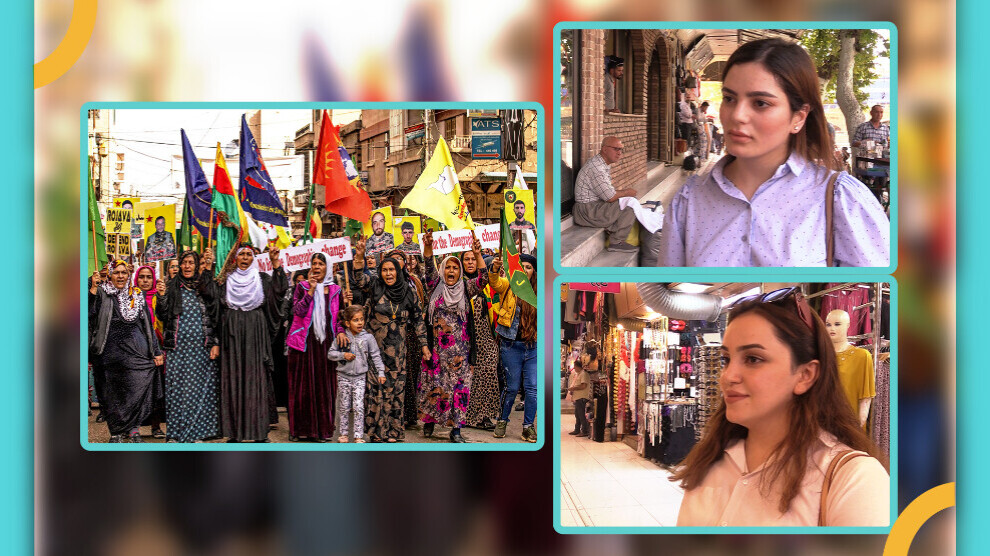 Jinek din a ciwana ji bajarê Silêmaniyê Şanû Enwer wiha behsa hêz û îradeya jinan a di şoreşa Rojava de kir û got: “Jin jî dikarin li Başûr şoreşê bikin û bajar û welatên xwe rizgar bikin û dikarin azadiyê bi dest bixin. Damezrandina pergala xwe rêveberiyê li ser bingehê azadiya jinê, xwezaparêz û netewa demokratîk e. Bi cihkirina sîstema demokratîk li Rojavayê Kurdistanê encamên wê yên baş hene, ji ber azadiya jinê heye û dikarîn alîkariya jinê bikin. Li vê derê azadiya jinê kêm e. Bi destxistina pergala demokratîk ku li Rojava heye, divê bi heman awayî li vê derê jî were bi cih kirin, wê demê wê jin di aliyê fikir, çek girtin û gelek tiştên din de wê bikarin encamên baş bidest bixin û wê encamek baş ji bo civakê jî bi dest bixin.”