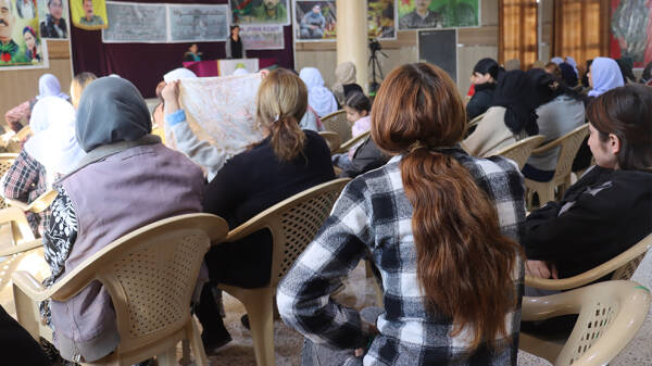 Endama Kordînasyona Tevgera Azadiya Jinên Êzidî (TAJÊ) Ehram Simail da zanîn ku ew bi saya felsefeya Rêberê Gelê Kurd Abdulah Ocalan îro tekoşînekê mezin dikin û wiha got: “ Mêr her tişt anî serê jin, zext û zilim pir zêde lê kiriye. Rûniştina me ya îro jî ji bo wê ye. Em jî bi fikir û felsefeya Rêber Apo rizgar bûne û îro em hejmarek zêde jin li vir kom bûne. Em çawa xilas bûne, emê hemû jinan ji zehmetiya ku jiyan dikin xilas bikin.”