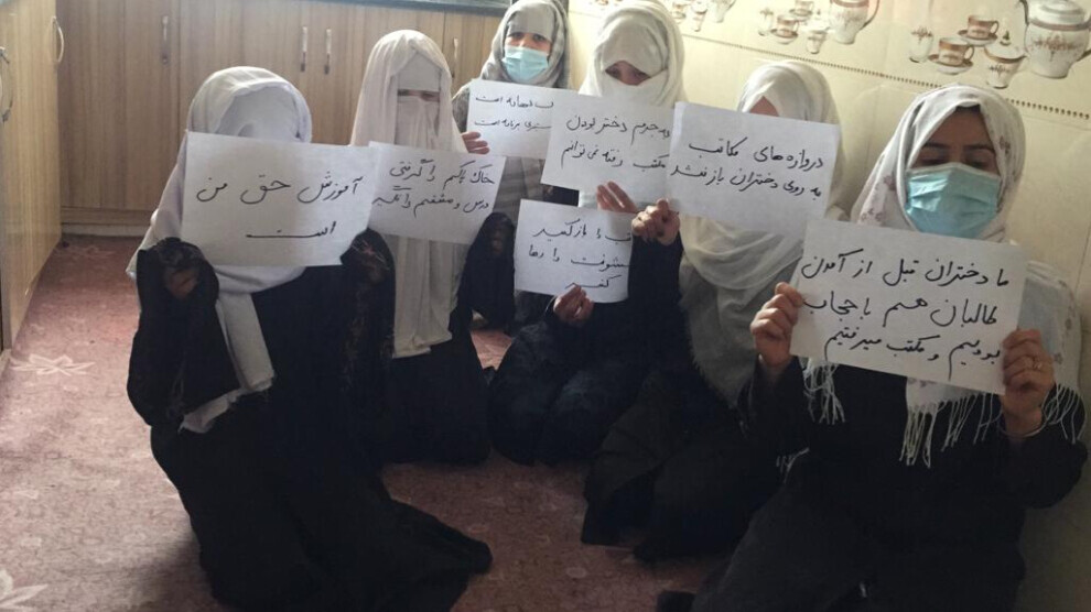 Jinên Afganistanê li hev kom bûn û bi diruşma "Nan, kar, xwendin û hîcab hincet ên plana dijberiya jinê ne", banga vekirina dibistanên jinan kirin.