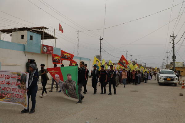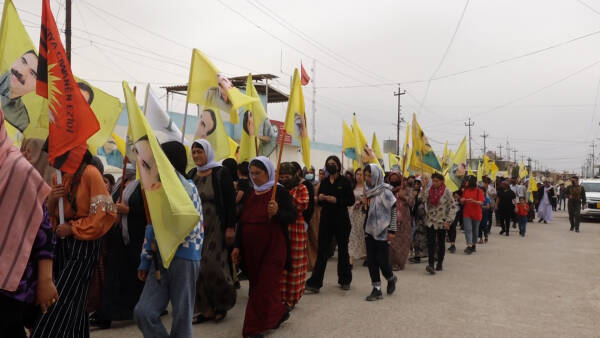 Endama Koordinasyona Tevgera Azadiya Jinên Êzidî (TAJÊ) Şemê Korkorkî wiha got: “ Em weke jinên Şengalê îro Ji bo piştgirtiya meşa Jinên ciwan amede bûn. Îro em tev ji bo azadiya fizikî ya Rêber Apo li virin weke gelê Şengalê em azadiya xwe di ya Rêber Apo de dibînin. Me xwe bi Rêber Apo naskir û bi ronahiya fikrê wî em îro tekoşîn li dijî her cure koletiyê didin meşadin. Heya Rêber Apo weke Fizikî Azad nebe em jî wê tekoşîna xwe bidin meşandin.”
