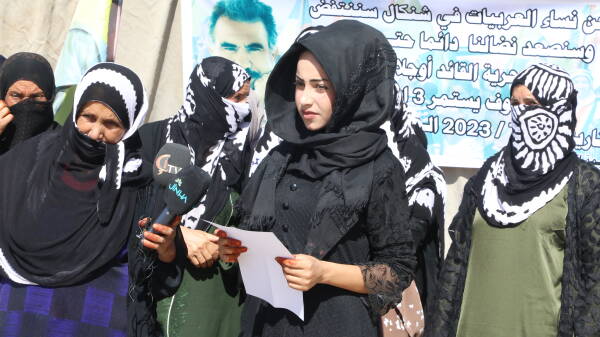 “Em wek jinên Ereb yên Şengalê li vir radigihînin ku emê 3 rojan ji bo azadiya Rêber Apo konê berxwedanê dayînin, di vê dema dawîde dewleta Tirk a dagirker siyaseta xwe li hember Rêber Apo guherandine û xistiye bin tecrîdek giran de. Dewleta Tirk a dagirker pîvanên dijî exlaqî dike û ev 4 salin em agahî ji Rêberê xwe na girin, em nizanin ku di çi rewşê deye. Jiyana wî di metirsiyê de ye. Heta nahêlin ku malbat û parêzerên wî jî seredan bikin. Ev yek qanûnên dij exlaqî û mirovî ne.”