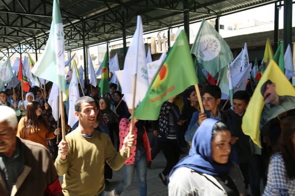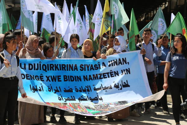 Kobanê- Rêxistina Kongreya Star ya herêma Firatê di bin dirûşmeya "Li dijî qirkirina siyasî a jinan, dengê xwe bidin namzetên jin" bi meşeke girseyî piştgirî dan namzeta jin yên ku beşdarî hilbijartinên li Bakurê Kurdistanê û Tirkiyê bûn e. Meş bi beşdar bûna gel sazî û dazgehên Rêveberiya Xweser, Meclîsa Malbarên Şehîdan, Xwendekarên dibistan û zanîngeh, Partiyên siyasî. Di meşê da alên Kongra star,malbatên şehîdan , Partiya Çepa Kesk û HDP'ê hatin rakirin.