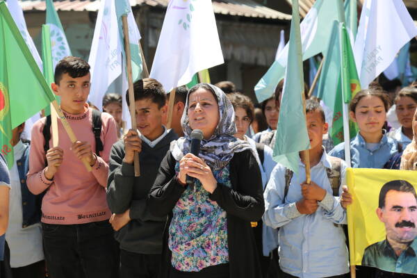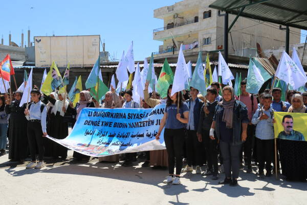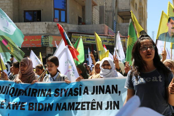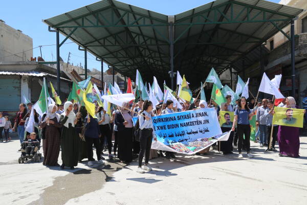 Kobanê- Rêxistina Kongreya Star ya herêma Firatê di bin dirûşmeya "Li dijî qirkirina siyasî a jinan, dengê xwe bidin namzetên jin" bi meşeke girseyî piştgirî dan namzeta jin yên ku beşdarî hilbijartinên li Bakurê Kurdistanê û Tirkiyê bûn e. Meş bi beşdar bûna gel sazî û dazgehên Rêveberiya Xweser, Meclîsa Malbarên Şehîdan, Xwendekarên dibistan û zanîngeh, Partiyên siyasî. Di meşê da alên Kongra star,malbatên şehîdan , Partiya Çepa Kesk û HDP'ê hatin rakirin.