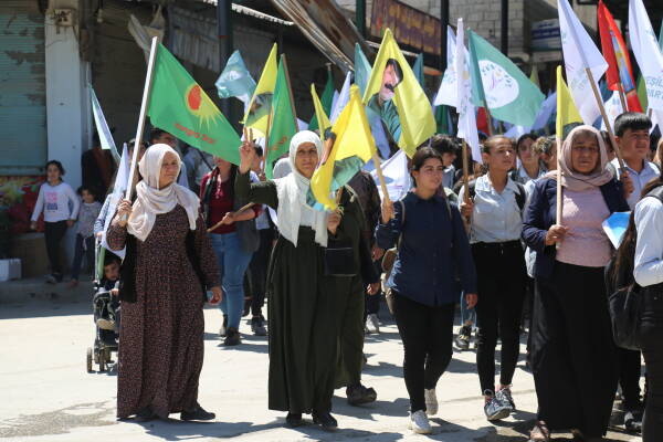 Jinên kantona Kobanê bi meşeke girseyî piştgirî dan namzeten jin yên ku beşdarî hilbijartinên li Bakurê Kurdistanê û Tirkiyê bûn. Jinan destnîşankirin ku wê bi beşdarbûna jinan di nava hilbijartinan de pergaleke azad û demokrat ava bibe.