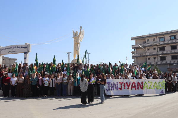 Daxuyanî bi siloganên “Jin, Jiyan, Azadî” bi dawî bû.