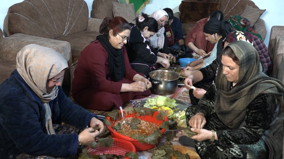 Jinên li bajarokê Girbewaî xwarinê ji Şervanan re amade dikin