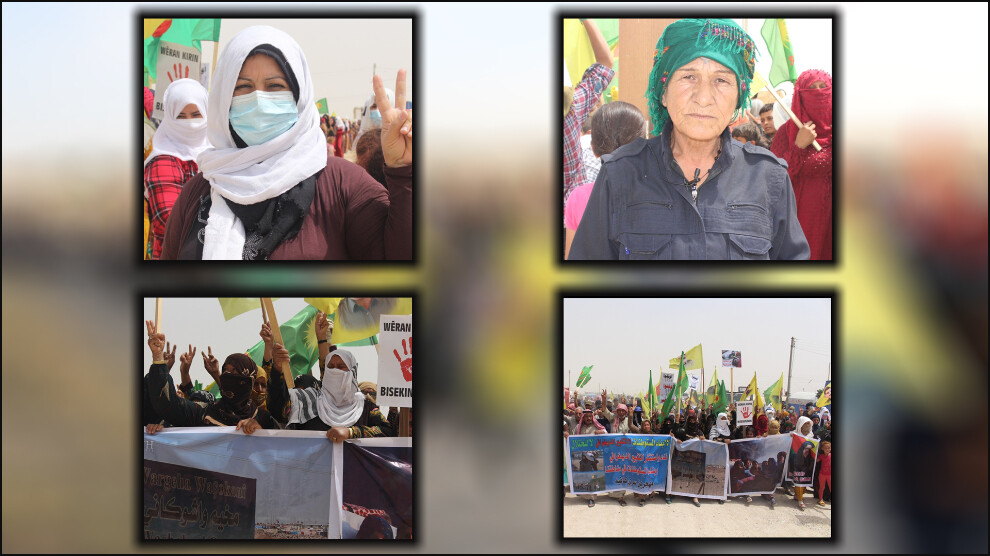 Îro bi hezaran koçberên kampa Waşokanî li hemberî projeya avahiyên mêtîngeriyê meşek li dar xistin û gotin “Tu mafê dewleta tirk nîne ku li ser ax û malên me pazarê bike”.