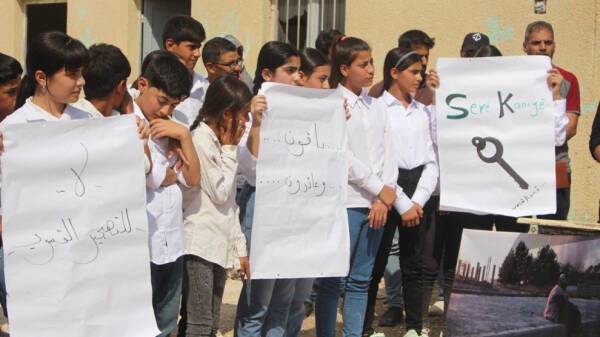 Daxuyanî bi zimanê Kurdî ji aliyê endama Komîteya Koçberên Serêkaniyê Fatma Mecîd ve li dibistana Waşokanî ya Kampa Waşokanî hat dayîn.