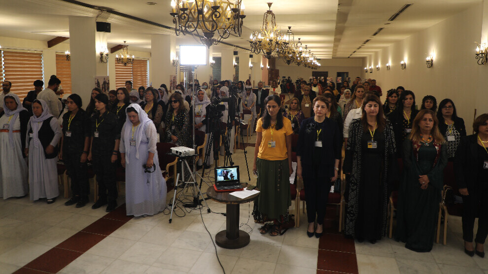 Konferansê bi deqeyek rêzgirtinê dest pê kir, piştre sînevîzyona ku der barê komkujî û fermana 3’ê Tebaxa sala 2014’an de ji aliyê çeteyên DAIŞ’ê ve li ser civaka Êzidî, jinên Êzidî rabû, hat nîşandan.