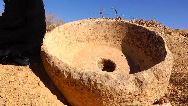 Eliya anî ziman ku li nêzî goran jî makîneya guvaştina zeytûnan, bi şêweyekî giroverî hatiye çêkirin hatiye dîtin û got: “Ev kevir ji dema dapîr û bapîrên me de heye, lê ev kevir çend salî ne hê jî kes nizane.”