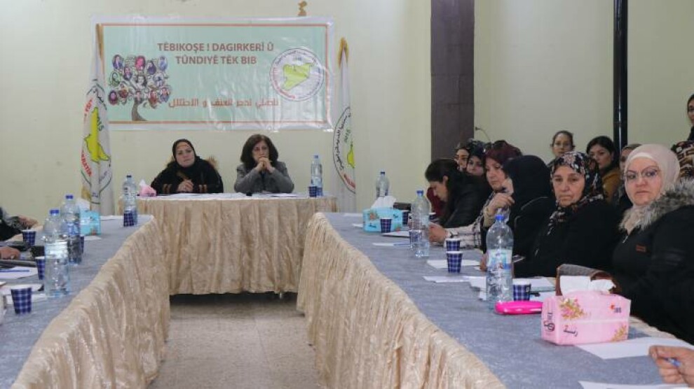 Heleb – Di çarçoveya çalakiyên 25’ê Mijdarê de Desteya Jin a Partiya Yekîtiya Demokratîk (PYD) a Helebê bi diruşma "Têbikoşe! Dagirkerî û tûndiyê têk bibe!” komcivînek ji jinên Taxa Şêx Meqsud re çêkir. Komcivîn li hola civînê ya PYD’ê ya Taxa Şêx Meqsuda Şerqî despêkir.